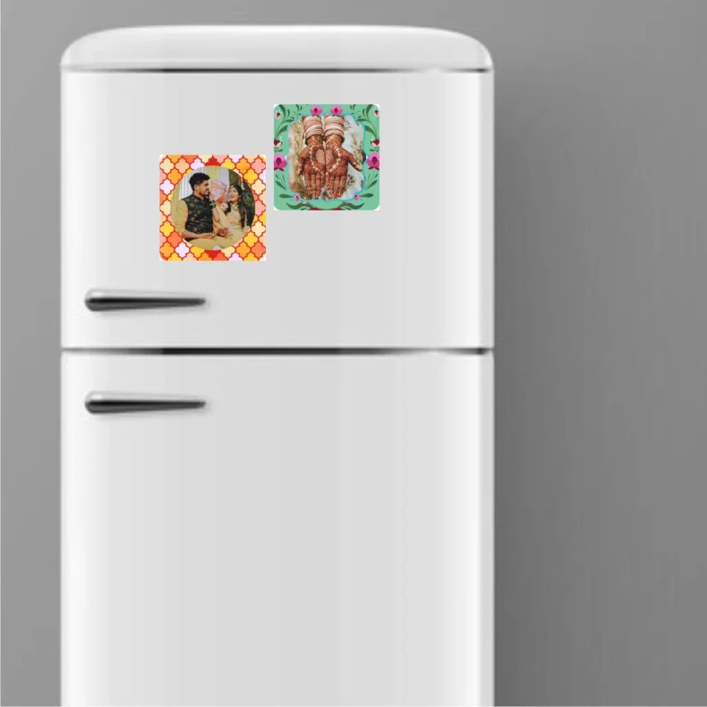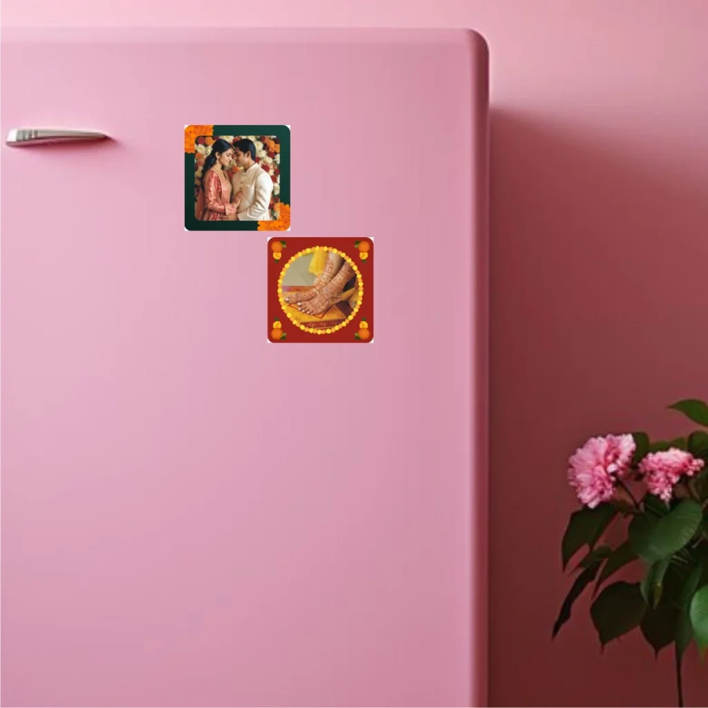 Capture your wedding memories in a compact, fun way with Nyouta Mini Photo Magnet Sticker Set. Perfect for fridges, lockers, or any metal surface, these magnets showcase your favorite wedding photos in style. Fully customizable with couple photos, names, and wedding date, they make a memorable keepsake or a thoughtful gift for family and friends. Ideal for gifting, décor, or preserving special moments.