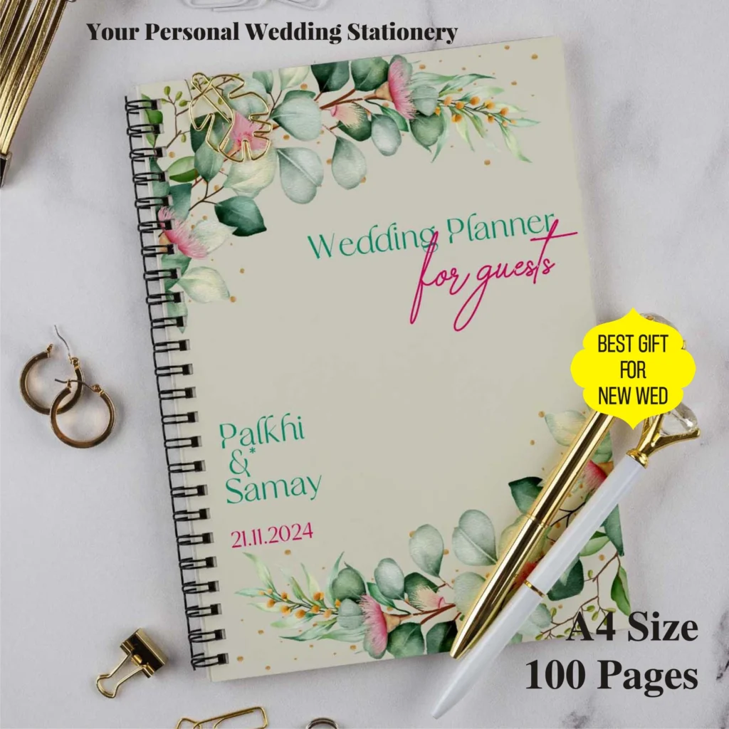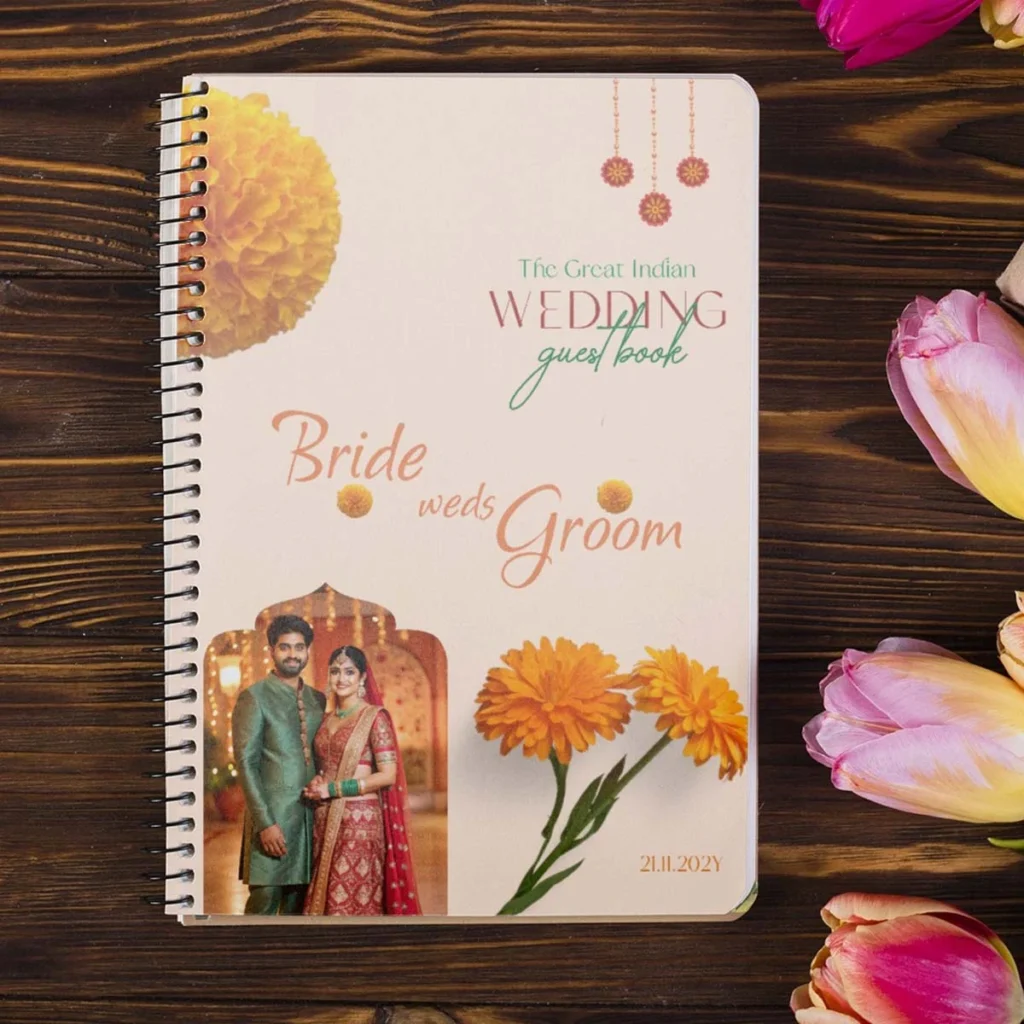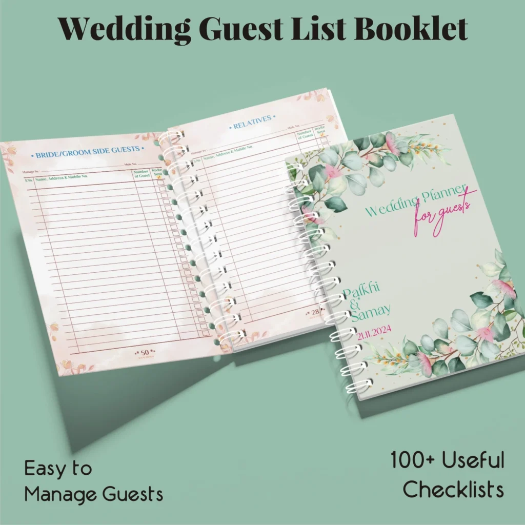 “Stay stress-free while managing your wedding guest list with the Wedding Guest List Book. Customized with your name, photo, and wedding date, this A4 book gives you ample space to record guest names, addresses, RSVPs, seating details, and gift tracking. With a clean layout, premium quality pages, and velvet finish customizable cover, it’s designed to make guest management simple and memorable. A practical tool and a perfect wedding gift for couples.”