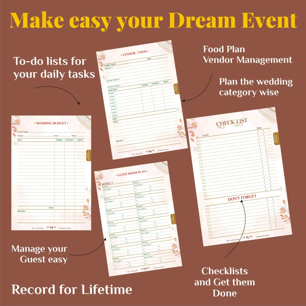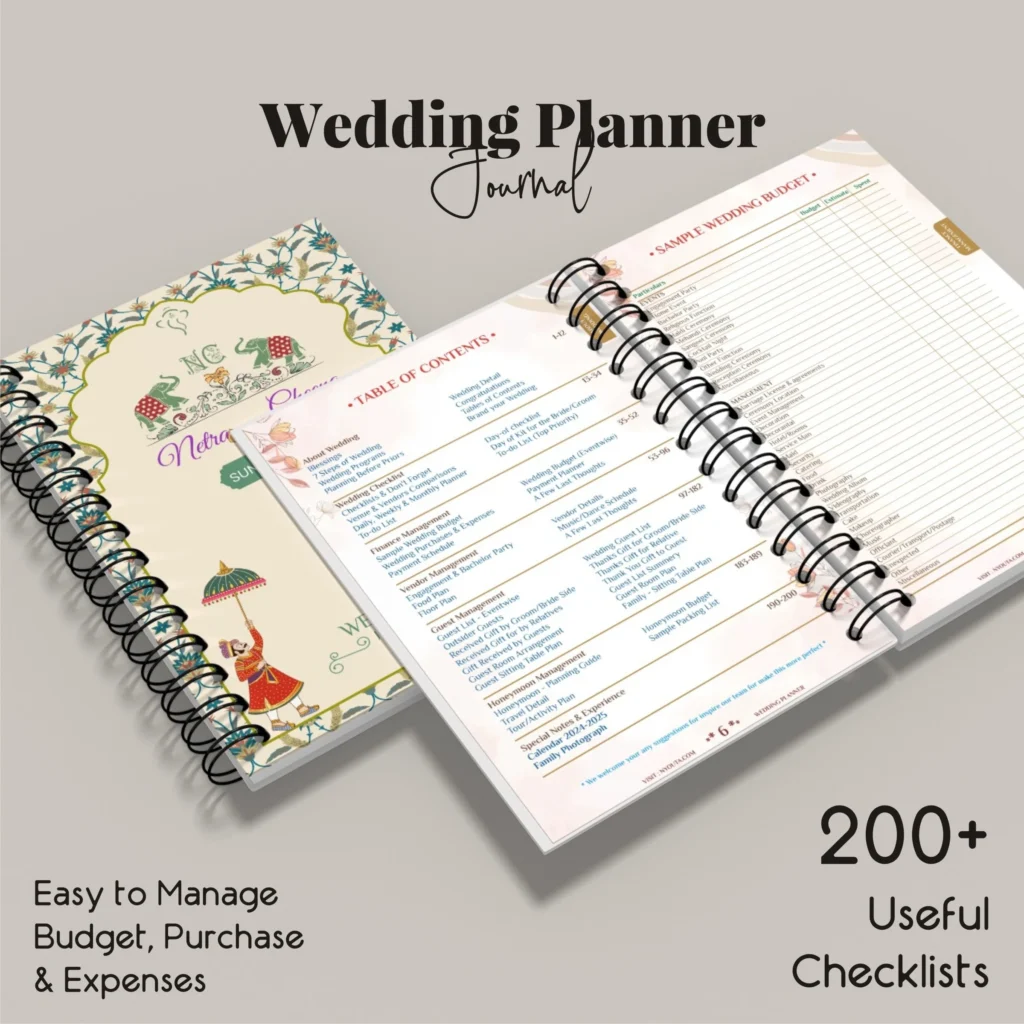 “An all-in-one wedding planner book customized with your name, photo, and wedding date. It helps couples organize every detail – from checklists and guest lists to budgets and vendors – making wedding planning simple, stress-free, and beautifully memorable. A must-have keepsake and a perfect wedding gift for brides-to-be,”