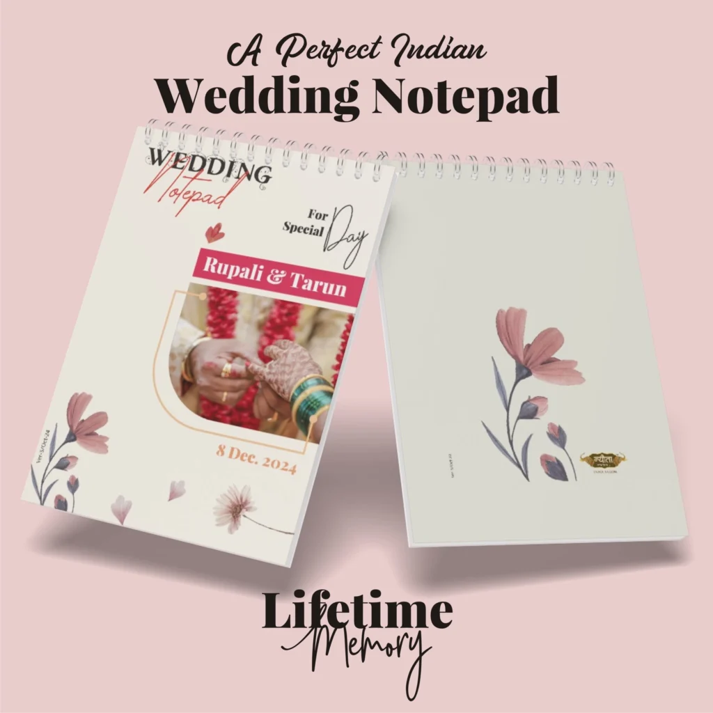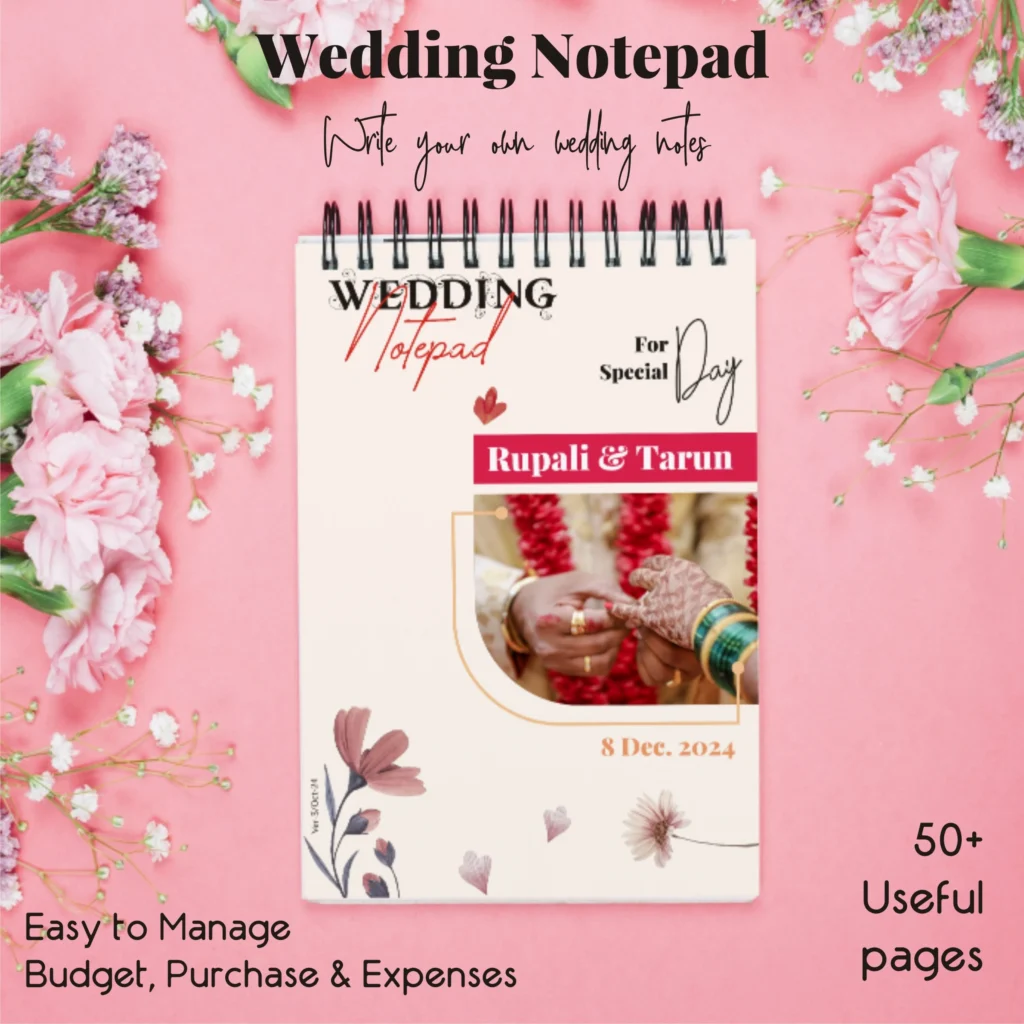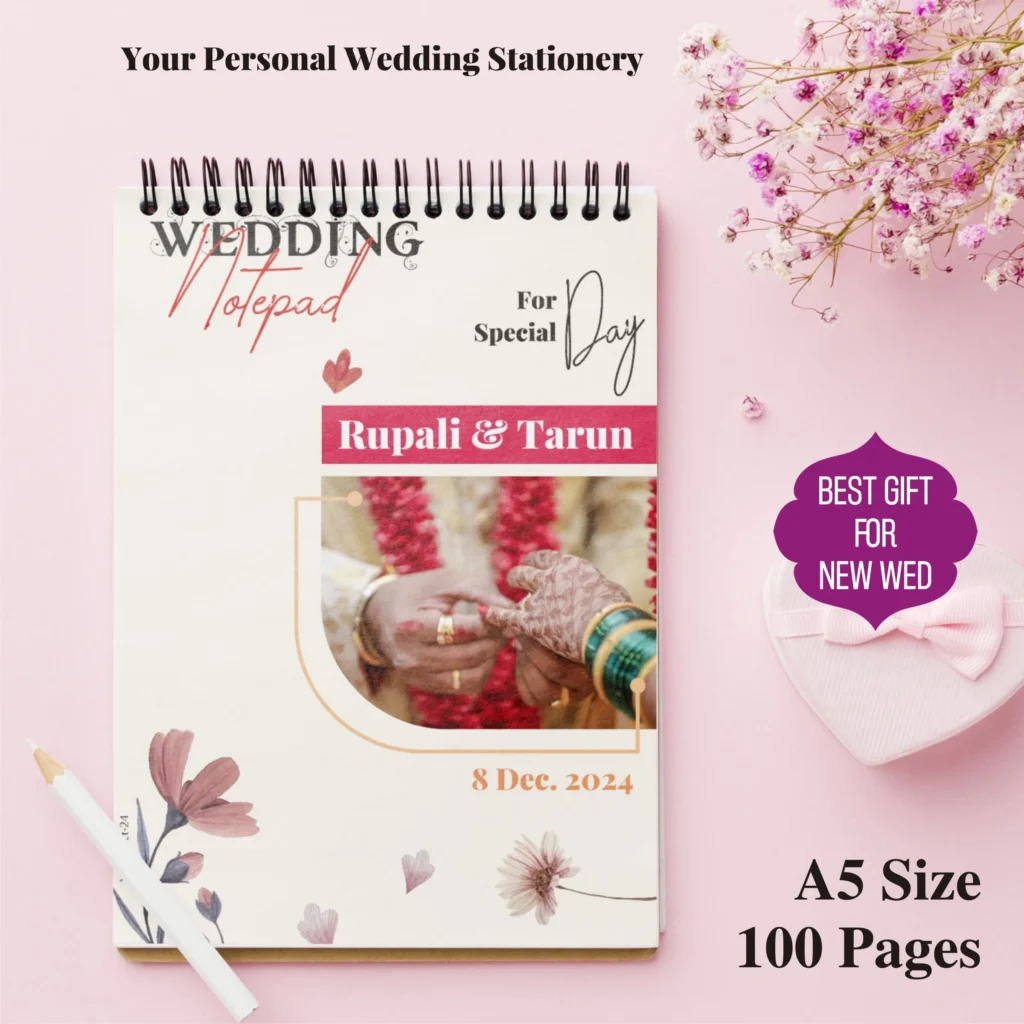 “Stay organized and capture every little detail of your wedding journey with the Wedding Notepad. Customized with your name, photo, and wedding date, this A5 notepad comes with useful wedding checklists to help you plan stress-free. Perfect for jotting down vows, quick notes, reminders, and to-do lists, it’s compact, stylish, and easy to carry. A practical organizer and a thoughtful wedding gift that makes your planning effortless and memorable.”
