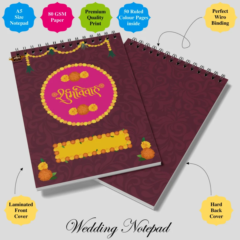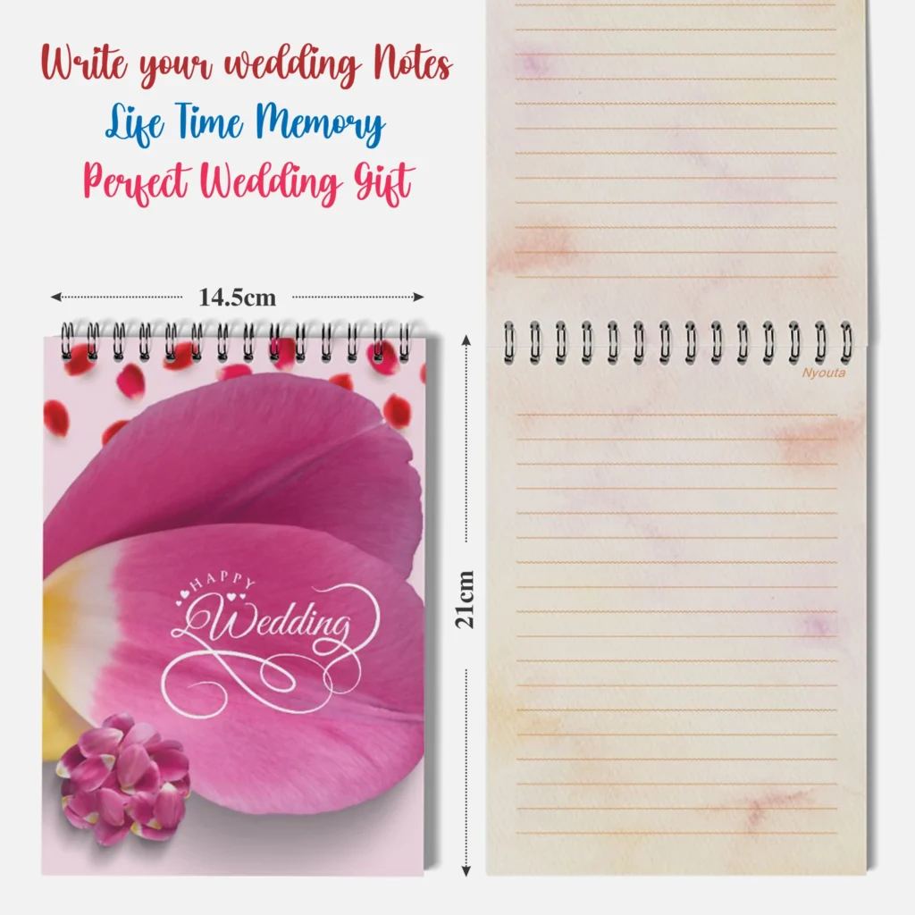 “Make wedding planning easier with the Wedding Notepad Set of 2 – a practical and stylish companion for couples. Designed in A5 size with ruled color pages, these handy notepads are perfect for jotting down quick notes, vows, reminders, and daily to-do lists. Compact, lightweight, and travel-friendly, they are ideal for planners and brides-to-be. A thoughtful, budget-friendly, and useful wedding gift set.”